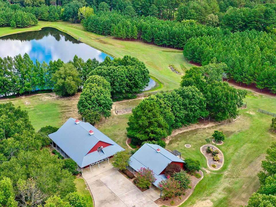 Private lakesPole barnAmazing viewsPrivate gated entranceWrap around porchSpacious layoutHand-planted cypress trees