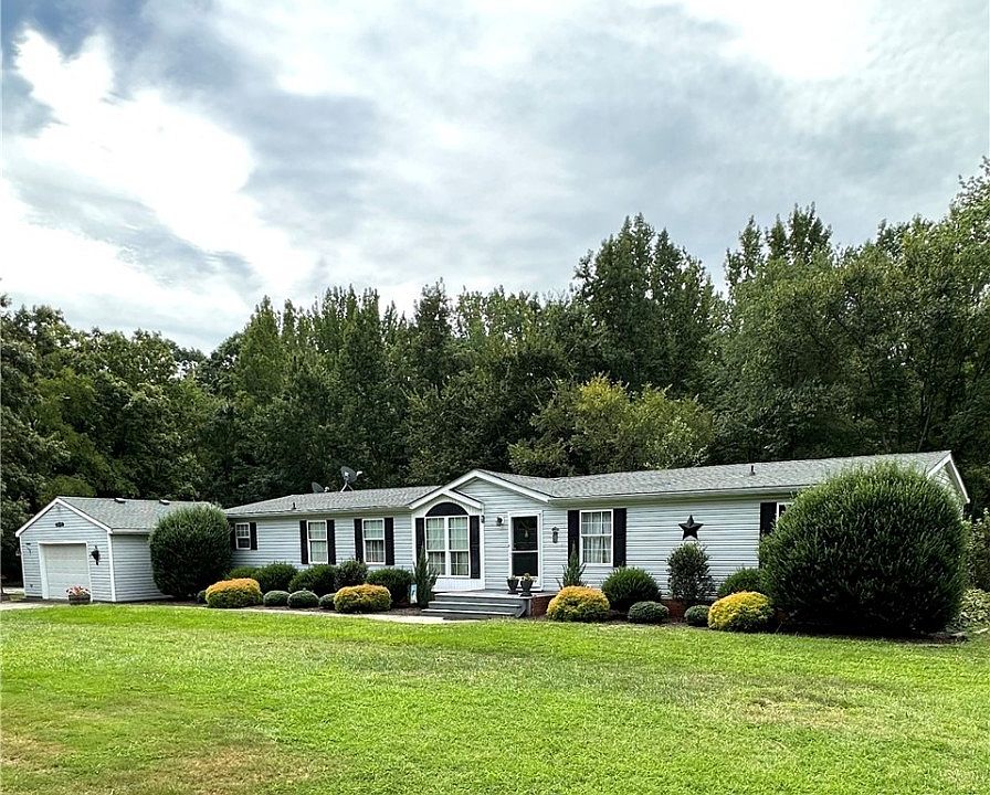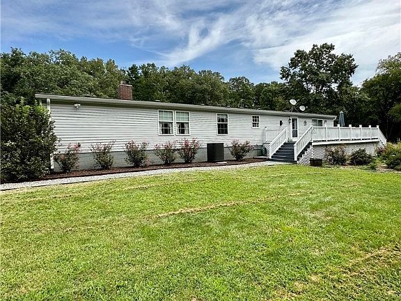 Great opportunity to own this spacious home situated on 2.5 acres! One level living with 4 bedrooms and 2 full bathrooms. Open family room with gas fireplace. Kitchen with stainless appliances. (Washer/Dryer and Refrigerator convey) Oversized primary bedroom(26X12). Spacious home office. There are several out buildings/sheds and a workshop with electricity and AC. Detached garage. Home has new roof and newer heat pump. Perfect yard for entertaining with your own covered cook cook station for grilling. Large rear deck. Low maintenance vinyl siding.