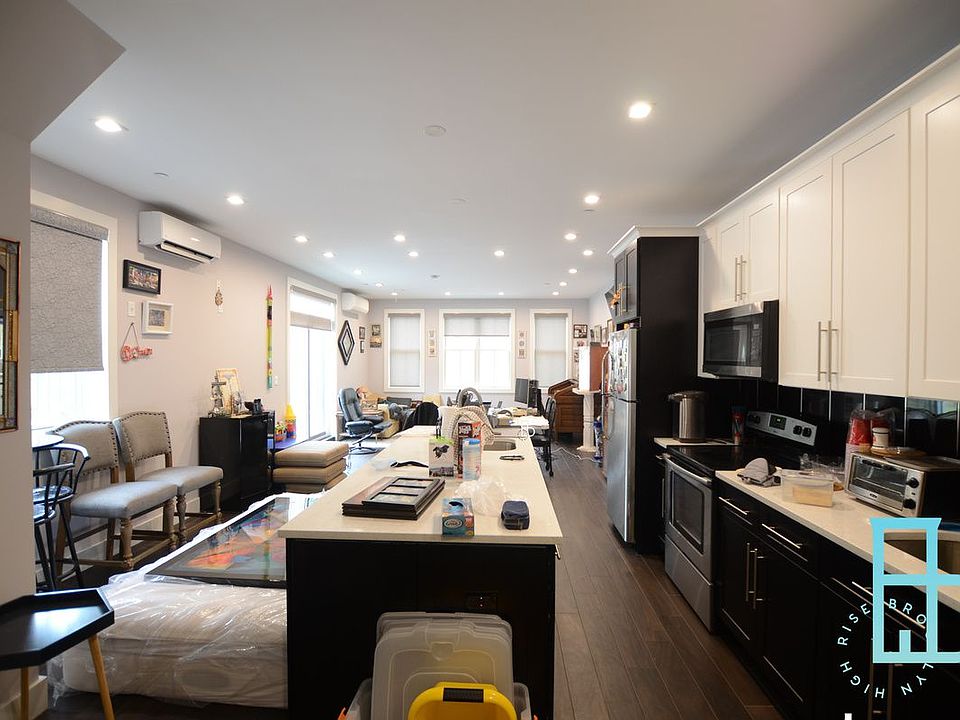 Three bedroom 2.5 bath Duplex apartment on 3rd and 4th floor of this recently renovated house. Walking in to a Designer kitchen with granite counter tops, brand name appliances and a large granite island with seating for 5. KOSHER KITCHEN PARKING SPOT AVAILABLE FOR THIS UNIT! Washroom and half bath. Spacious living room, 8 foot ceiling surrounded by windows and a balcony leading off it. Second level features 3 bedrooms all with windows and closets. Master features a spacious walk in closet complete with hanging space, draws and shelving, master bath and private terrace.
