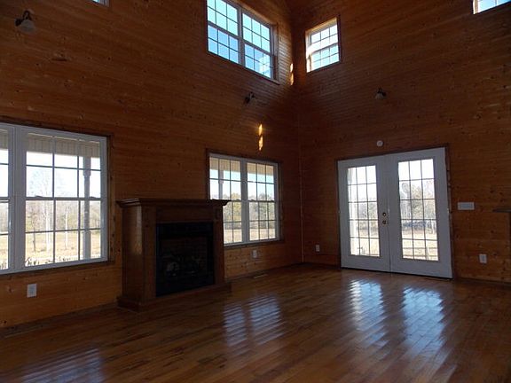 Great buy on this beautiful home built in 2005 features all pine wood walls and ceilings,hardwood floors,Great room with gas fireplace,Wraparound front porch, covered back porch and double detached garage. All this located on a beautiful 5 acre tract of land. If you like the country you will want to preview this home. Recorded easement for access to the property. Minimum Earnest Money Deposit $1,000 or two percent (2%) of contract price,whichever is greater,to be paid by cashier check or certified funds payable to Sellers designated closing agent.
