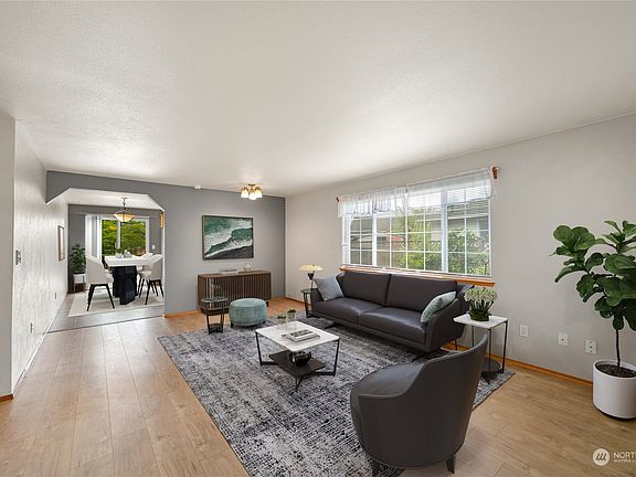 Discover your new home in this charming 3-bedroom, 1.5-bath rambler nestled in a peaceful cul-de-sac in Ferndale. Enjoy a spacious main living area and a welcoming eat-in kitchen with plenty of natural light. The well-designed layout features bedrooms privately situated away from the main living space, including a primary bedroom with an attached half bath and walk-in closet. Step outside to a generous back deck and fully fenced yard—ideal for relaxation and outdoor gatherings. With a 2-car garage offering ample storage and proximity to Bellingham’s amenities, this home combines comfort and convenience. Home is digitally staged to show the possibilites.