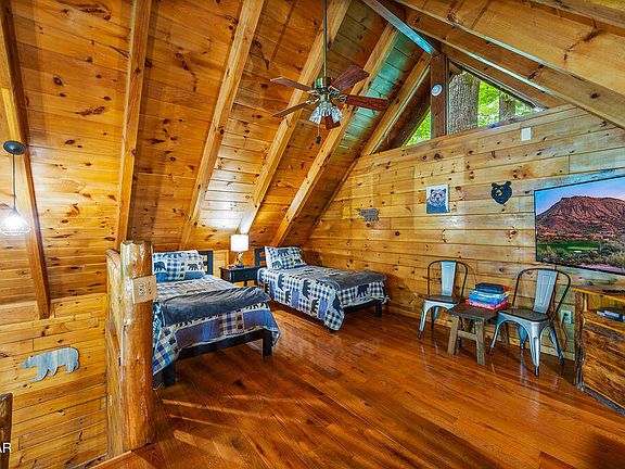 Sleeping arrangements include a king bedroom on the main level with a Jacuzzi tub, a loft area with 2 Twin beds that has been a hit with kids, and a queen sleeper in the living room. Updates throughout the cabin include new hardwood flooring upstairs and downstairs, new furniture, TVs, a refreshed bathroom and more.