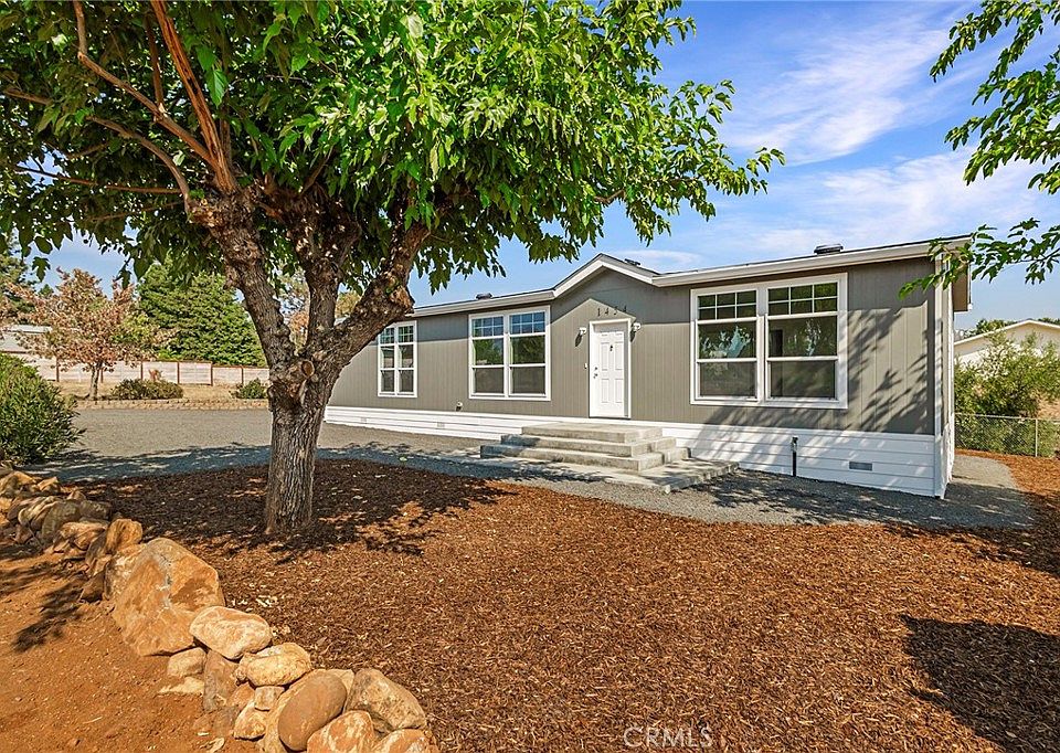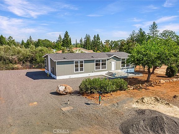 Phantastic end of lane location for this upgraded manufactured home. This home offers 2 bedrooms, 2 baths, bonus room/den with 1512 square ft. Level and usable .32 acre lot. This lot has a good amount of surviving trees and bushes, there's even a rose garden and fruit trees. Nice brick patio overlooking the garden area. The seller also installed a fire suppression sprinkler system! This home offers split master floor plan. This open floor plan design offers 9ft. ceilings throughout & 6 ft high windows. The kitchen overlooks the living room and dining room. The kitchen has tons of cabinets, shaker style fronts, stainless appliances, 4X8 diamond shaped kitchen island with soft close drawers and cabinets, breakfast bar, granite counter tops, built in microwave, extra L.E.D. recessed lights and upgraded stainless refrigerator! The spacious primary bedroom offers a walk in closet. Primary bath offers granite counters, linen shelves and a step in shower. The guest bedroom is very spacious with a 6ftX12ft. walk in closet. Inside laundry room with gas or electric hook-ups. Nice 10ft X 18ft. concrete front porch and stairs to the front door. Rain gutters. Exterior siding is cement board. Plenty of room to park a trailer, boat or R.V.!