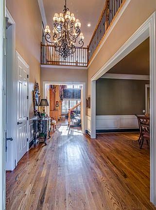 A Classic Revival home featuring cast stone archways, covered front and side porches, Butler s pantry, granite countertops, natural marble vanities, Master BR & Guest BR on main floor, screened porch overlooking 2 of Laurelbrook s lakes & fountains.