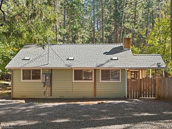 Peaceful and cozy cottage in a serene wooded setting! If you are looking for a quiet, spacious setting yet close to town amenities, look no further! This property offers you an acre lot with beautiful trees and a seasonal creek. A portion of the lot is fully fenced for you furry friends. There is a circular driveway that has recently had gravel installed which is especially great during the wet season. There is ample parking, gates in the fences and plenty of space for any trailers and toys you may have. The shed has ample space, is insulated and has power for your storage needs or perhaps your she-shed or man-cave? As you work your way into the home you are greeted by a covered and screened in front porch. Enjoy your morning coffee, an evening meal or just sit and listen to the sounds of nature. Entering the home you have a generous sized living room with vinyl wood style flooring and a wood stove for those crisp winter mornings. On the property there is ample firewood split, stacked and ready for your enjoyment. A mini-split system is in the living room and both bedrooms for convenient and efficient temperatures in each room. There is a wrap around bench with a table for dining and in the kitchen you will find solid countertops and all the necessary appliances including a new refrigerator and stove. The home had a brand new comp roof installed at the end of 2021 done above code. Over $3,000 of updated electrical work was completed in March of 2022 which included a new panel and a special outlet for a generator. This comfortable cottage and setting are simply lovely! You will likely see deer, quail and other types of wildlife, some beautiful snow in the winter and cool, shady summer days. The B-line bus stop is just down the road at Skyway and you will have a solid new mailbox there as well. The new Lakeridge Park that is scheduled to be built soon will be just a few minutes away. Come and see for yourself, sit and enjoy the setting and imagine your new living environment.