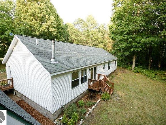 Newly remodeled home featuring 3 BR/2 Baths. Relax and enjoy your own private oasis with plenty of room to spread out on five beautiful acres of hardwoods. Put your hammock under a shade tree, listen to the breeze in the trees or see the stars without the city lights. Only ten minutes to shopping, restaurants, or Crystal Mountain, with state land/trails just down the road, and only 30 minutes to Traverse City. The over sized garage even has a 36' x 16' upstairs with a separate entrance that can be finished however you like. All appliances included in the sale. Owner is licensed real estate agent and selling agent.