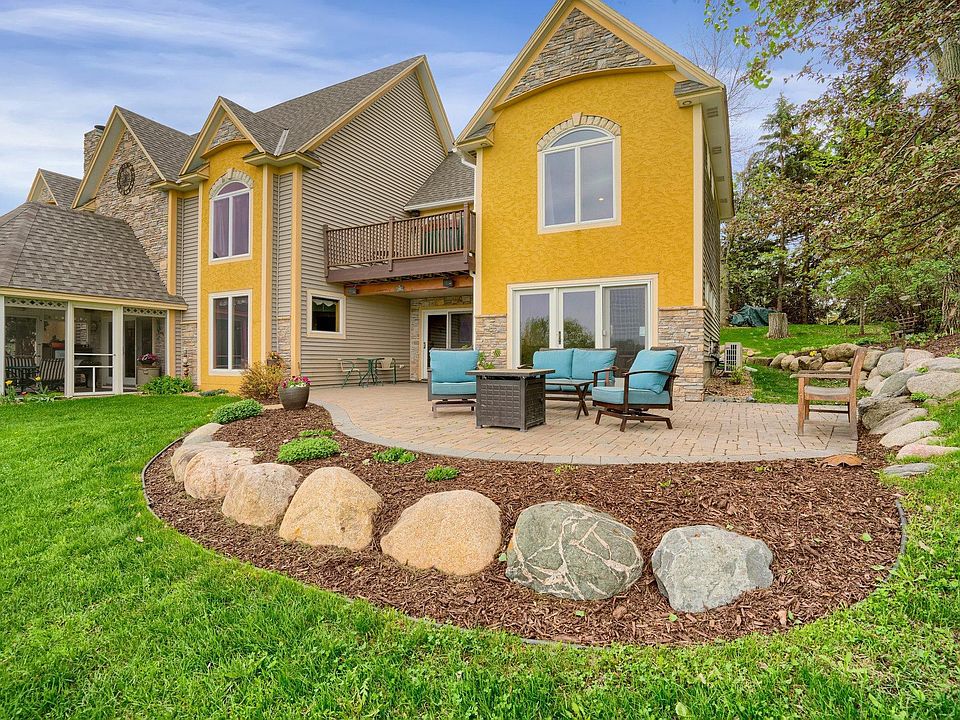 Sit back and enjoy your spacious home with beautiful Lake O'Dowd views. Step into your impressive home with vaulted living room and screened porch to take in your views of the lake. The upper level features 4BR & 2 updated/tiled BAs. The primary bedroom is complete with a private deck, walk-in closet and gorgeous tiled bath with 2 vanities & separate tub/shower. 3 add'l BRs & open loft with views of the main level make the upper level flow with the rest of the open floorplan home. The main level features 2 Frpl, one in the living room & family room, an abundant amusement room, formal & informal dining rooms, LVP flooring, laundry and kitchen. The spacious 2 car garage offers additional storage in the front and a shed is located next to the garage. The back of your lot shows off a beautiful retaining wall while the front of your yard is sprawling with space, paver patio & a private pond with waterfall. Deeded lake access comes with the home, along with the dock. Welcome home!