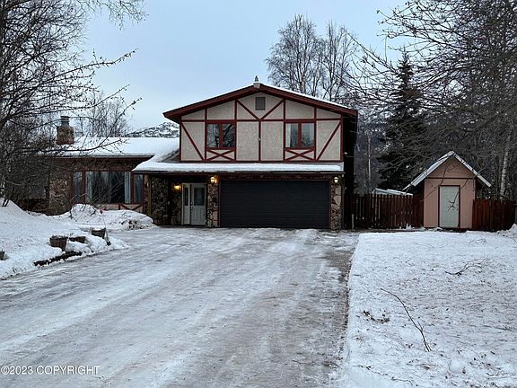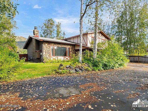This property has real homesteader appeal yet, still close to Anchorage and JBER. It has a large fenced lot, greenhouse, workshop, and multiple out buildings. Gardener's Delight with fruit trees and berry bushes, and various flowers. The chicken coop, stays! Exposed beams through out the living room and dining room. All 3 bedrooms upstairs. This home has so much potential for your touches.