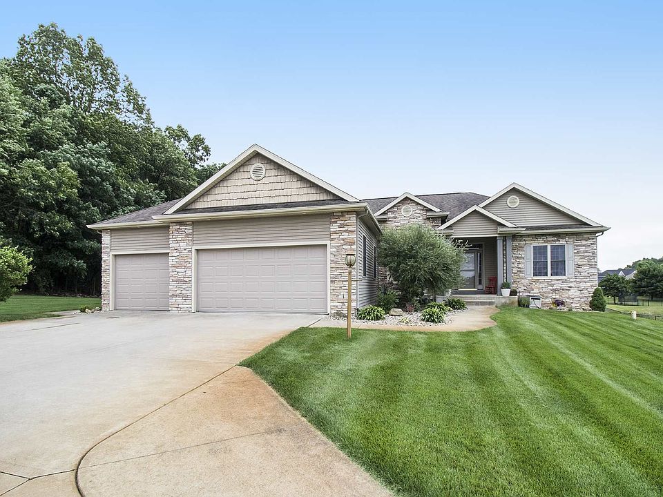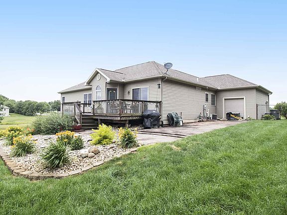 Beautiful walkout ranch on .93 acre of land bordering a pond. Three bedrooms and a den on main level, with a 4th bedroom in lower level. Main floor laundry. Partially fenced yard, 2 patio areas, plus a nice deck with great views of the pond and sunsets.