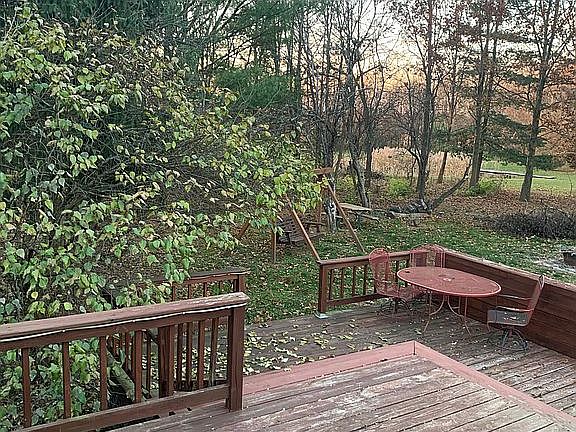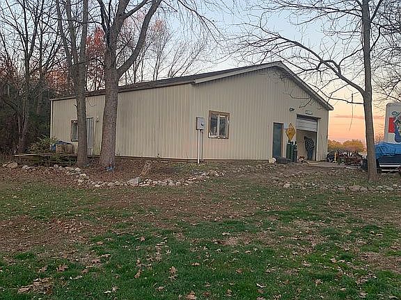 Split level home with 2 car garage. 2 bedrooms and a full bath upstairs and 2 bedrooms and a full bath downstairs. Large 40ft by 43ft insulated pole barn with 10 acres mostly wooded.