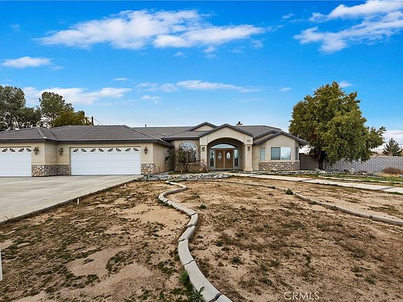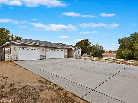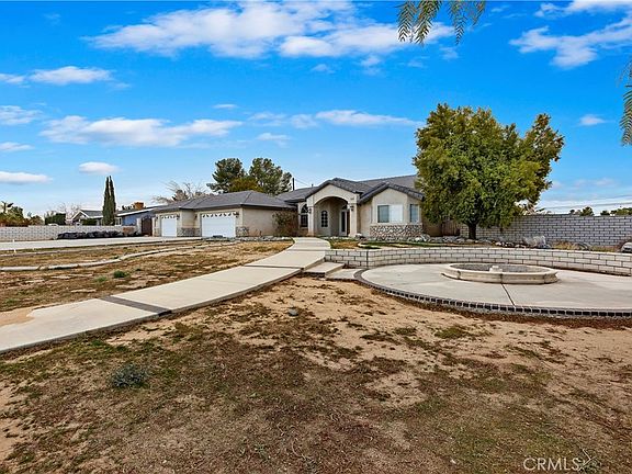 Desert living at its finest. This traditional ranch style house has all that you need; 4 bedrooms, 3 bathrooms, 2683 square feet of living space, enormous backyard, pool with waterfall/spa, gated area for dogs, RV or recreational toy storage & the lot is over an acre to add an ADU or anything you can dream of. Grand double entry doors with sidelights lead you to a light & bright foyer with new grey wood look tile flooring, neutral color paint throughout, new light fixture and architectural design. The formal dining room is to the left of the foyer with 10’ ceiling and ceiling fan. Arched doorway from foyer takes you to the newly remodeled gourmet kitchen featuring an abundance of shaker cabinets w/soft close doors/drawers, gleaming Quartz counters highlighted w/glass mosaic tiled backsplash, stainless-steel appliances, huge center island with tons of storage, newer ceiling fan, vaulted ceiling w/recessed lights, walk-in pantry and is open the nook w/view of backyard to watch your children play in the pool. The kitchen is open to the huge family room offering newly designed custom gas fireplace w/ledgestone, vaulted ceiling w/fan, recessed lights, solar tube light and arched doorway leads to hallway w/entry door to the backyard & 1 back bedrooms w/remodeled full bathroom great for multi-generation living. Back bedroom w/vaulted ceiling, ceiling fan, walk-in closet and newly remodeled full bathroom w/tiled flooring, vanity w/Granite top & combo tub/shower insert. Two additional guest bedrooms towards the front of the house w/walk-in closets/organizers, ceiling fans and share remodeled full bathroom w/tiled flooring, vanity w/Granite top & combo tub/shower insert. On the opposite side of the home is where you’ll find the well-designed primary bedroom with a sitting area great for relaxing or the option to utilize as a nursery for the growing family or workout station, door leading to back porch, large windows provide natural light, ceiling fan, his/her closets and the gorgeous en-suite bathroom presents a generous walk-in shower w/impressive tiled walls, spiffy hexagon shower floor, his/hers vanity, chic soaking tub and the low maintenance tiled flooring completes this gem! The laundry room has ample space w/built-in utility sink, washer-gas dryer hookup and gives direct access to the large 3 car garage. 2 back doors lead to a gated covered porch great for BBQing and mingling with guests while your kid’s swim. Perimeter cinder block wall gives desired privacy
