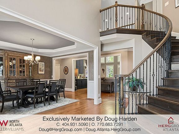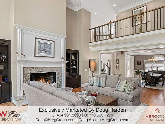Beautiful executive home that is situated on the eighteenth fairway with tranquil views of the creek and the golf course. Mature landscaping with azaleas and rhododendrons galore in the backyard. Home completely rebuilt in 2014(new). Master on main with huge walk in closet and custom shelving/center island for storage. Master bathroom updated, enjoy the rainshower and body spray fixtures in the shower. Most of the blinds are custom with light filtering and automatic opening. Amazing Chef's kitchen with island that seats 4 people and lots of storage below. Beautiful family room with wall of windows and lots of natural light together with an oversized granite fireplace. Keeping room has fantastic stacked stone fireplace. The top porch has Trex decking with an additional porch on the basement level with underdecking which extends width of the home. Basement perfect for an in law suite and has a media room with an oversized fireplace, study with built in bookshelves and coffered ceilings, fitness room, wet bar, bonus room, full bath and office/bedroom. Lots of storage spaces. Close to 400 and Avalon for shopping and dining. Amenities including splash pad, zero entry pool, water slide, swim team, active tennis league. Photos do not do this home justice. Top rated schools! Bring your buyers!