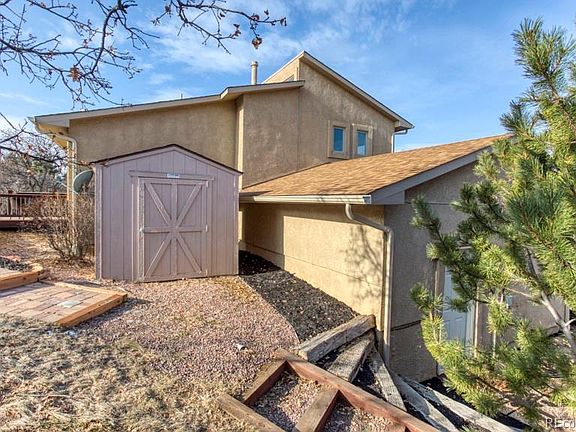 Spacious home in Northern Colorado Springs! Beautiful wooded large corner lot with two car attached garage and 4 levels of this home allow for all of your interests. Garden level on the west side has: a moss rock wall with fireplace, wet bar plumbed in, powder room and laundry as well. Main level has a kitchen, island, stainless steel appliances, granite countertops, hardwood floors, dining area, deck, and an office with glassed pane pocket doors for privacy. The living room has a gas fireplace with it's own deck as well. The top level has a luxury master bedroom and en suite with it's own deck, 2 large bedrooms (one with a Romeo and Juliet type balcony), and a full hall bath. There are so many places for you to enjoy the mountain views from your vinyl windows and the outdoors to get away and either have a barbecue or just relax and read a book. From your retreat it is only 6 minutes (3.2 miles) to hop on I-25, 7 minutes to Sprouts, cafe, and CB and Potts.