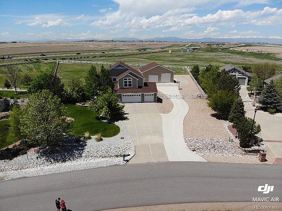 Great acreage family home with shop building. This home sits within close proximity to all sorts of highways to get you where you need to go. I-25, 470, 85 and I- 76 are all short distances away , and you're very close to shopping at Larkridge, and Orchards, (within miles), and Brighton is just a few miles as well. In the front, as you come in, you should notice the wood staircase and the formal dining /living/ semi private office area which really is a good flexible space for you to make work for your family. The large kitchen has all the latest appliances, plenty of cabinet space and a large pantry. There's a convenient center island and a large breakfast nook. Just off the kitchen if the family room with vaulted ceilings, built in entertainment center, and lots of windows to enjoy those mountain views. Upstairs the master bedroom suite, has vaulted ceilings, a large walk in closet, as well as a 5 piece master bathroom. There are 2 more bedrooms and another full bath and a very functional loft area on the upstairs level also. The shop building has 14' clear height along with 220 power upgrades, 12' overhead door, and a 40x25 fenced in area for extra storage area, outside. The owners have taken a lot of pride in making the yard enjoyable, as well as fairly maintenance free, with all the vinyl fencing and gates. and has been very well cared for. Enjoy the mountain views from the large poured patio, and fire pit area for gatherings or just family time.
