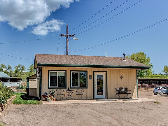 This rare 5 acre property in Arvada featers a remodeled 1536 square foot 3 bedroom 2 bath home and a separate 704 square foot hair solon that could be an office or studio or?? for a total of 2240 square feet and also has an1152 square foot shop/garage and over 7300 square feet of additional buildings that currently house 30 horses with room to add more. The home was remodeled in 2014 and has a large master suite and 2 more bedrooms. There is a great country kitchen that overlooks the yard and above ground pool. This is currently a profitable horse boarding business and home. The runs are large and all have shelter and automatic heated water. Lots of trailer parking and many storage sheds for boarders. This property has access directly to many trails and the Arvada Outdoor Equestrian Park. This property is zoned a1 with over 5 acres and a domestic well. This is a very rare,privately located, 5 acre property.
