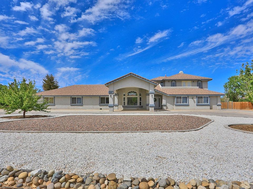 Beautiful large custom home near the Apple Valley golf course!Enter into this bright and airy home that provides plenty of space to entertain and grow. Beautiful laminate hardwood floors extend throughout the 1st floor.The formal living and dining room greet you with large windows and high ceilings for a grand feel. The gorgeous kitchen has been updated with quartz countertops, stainless steel appliances, and white cabinetry. A large walk-in pantry gives you added storage space. Entertain your family and guests in the great room that features a wood burning stove surrounded by brick. 4 bedrooms and 2.5 baths complete this spacious and natural light filled first floor. Head upstairs to your own private master bedroom retreat complete with 2 balconies, a fireplace, a gorgeous remodeled master bathroom, large and bright walk-in closet, and a room that could be used as a gym, a sewing/craft room, or another closet. On the second floor you can also enjoy beautiful views of Apple Valley from the East or West. The extra large 3 car garage has a workshop area and a separate storage room to help keep your home organized! This home offers endless amounts of storage with many closets and cabinets. The driveway is large with a portico for added covered parking. The backyard is your canvas to make your own.To complete this amazing home it has solar to keep your electric bills low!Come see for yourself all that this home has to offer!!!