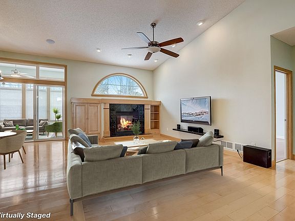 Welcome to this beautifully maintained 3 bed home. Enter into the main living area, full of light. The open-concept living area features vaulted ceilings and a ceiling fan. The living room hosts a fireplace for cozy evenings. The kitchen has lots of cabinets for storage and sleek stainless steel appliances. Off the living area is a sunroom with deck access. The primary bedroom is also located on the main level with a private bathroom including a separate tub. Head down to the lower level where there is a well-appointed family room and wet bar. This basement has a backyard walk-out, leading onto a patio. Two additional bedrooms are also located on the lower level. Plenty of storage in the basement and a main-level laundry room. New water heater and garage coils. Surround sound and three TVs will stay with the home. Beautiful views of the backyard pond from the deck. Quick close possible and preferred. Great location near Prior Lake and Lakefront Park, call this one home!