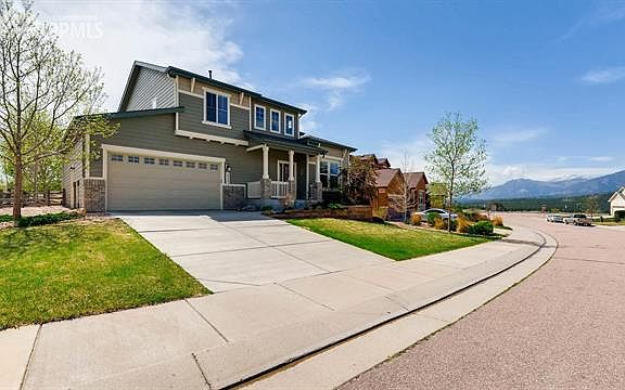 Beautiful John Laing Home close to all of the new amenities in Northgate. Stunning views of Pikes Peak and the Front range from both the back and front of this beautiful home. A covered porch and upgraded front door greet you as you enter. Gleaming hardwood floors extend through the 2-story foyer, formal dining room, kitchen and butler's pantry! Relax in the expansive main level family room w/ gas fireplace and views of the mountains through large windows. Walk out to patio, fenced and professional landscaping. "MORE" Property backs to OPEN SPACE! Second story has EXPANSIVE master bedroom with adjoining 5 pc bath, walk in closet and views from all windows! Two large and bright secondary bedrooms on upper level, full bath and LAUNDRY where you need it! Basement is a great place to relax with large family room with built-ins, 2 bedrooms and full bath! D-20 schools! Close to shopping, trails, Air Force Academy North Entrance. Easy commute to Colorado Springs or Denver. Don't miss this one!