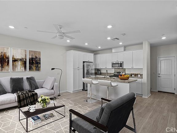 Welcome Home to the highly desired Prado gated community of Eastvale! Recently built in 2020, this two story attached condo features 3 bedrooms, 2 full bathrooms and 1 half bath on the first floor. Step through your front patio and inside the home to be greeted by laminate wood floors, recessed lighting and an open floor plan. Imagine cooking dinners for yourself or guests in your kitchen with like new appliances and a countertop perfect for entertaining. Just off the kitchen before reaching the stairs is your half bath. At the top of the staircase you'll find a small loft area and storage. Upstairs are your two guest bedrooms and full guest bathroom. Down the hallway is your indoor laundry room complete with a washer and dryer, linen storage and your primary suite. Your primary bathroom offers a tub, walk in shower and dual vanity sinks. Make use of your over-sized attached two car garage with room for storage and direct access to the home. The interior of the home was recently painted for a fresh new look. If you work from home, you may take advantage of the wifi extenders and access points throughout the home. Enjoy the community amenities such as the pool, spa, BBQ area or park just a short walk away. For easy commuting, jump on the 71, 91 or 15 freeways to get to your destination! Located in the highly rated Corona-Norco Unified School District and close by all you needs for shopping, eateries and entertainment. This home has a solar lease offering electricity savings. Come see why this home could be yours today.