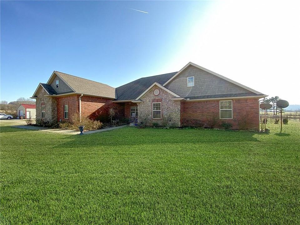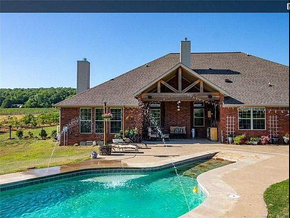 Welcome to your own 9+ acre paradise! Country living yet close to town - 768 sq ft shop, RV parking, enjoy fishing in your own stocked fishing pond, and gunite swimming pool! This home boasts amenities - cathedral ceilings, split floor plan, craft room, 2nd living room, tons of updates (see supplemental docs), and large windows letting in an abundance of natural light. Kitchen is a chef's dream - granite counters, double ovens (convection), 5 burner gas cooktop with pot filler, and large island. Retreat to the spacious master bedroom - trey ceilings, whirlpool tub, dual sinks, spacious walk-in shower w dbl showerhead. Living room features a charming wood burning fireplace and beautiful wood floors. Laundry room includes tons of cabinet and counter space with its own sink. Relax outside on the back porch or star gaze the night away. Come see your next home!