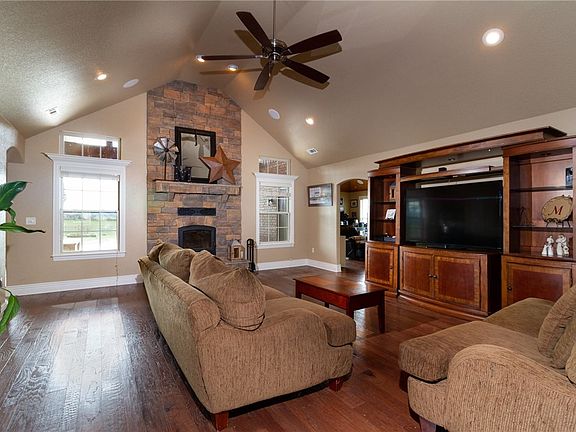 Welcome to your own 9+ acre paradise! Country living yet close to town - 768 sq ft shop, RV parking, enjoy fishing in your own stocked fishing pond, and gunite swimming pool! This home boasts amenities - cathedral ceilings, split floor plan, craft room, 2nd living room, tons of updates (see supplemental docs), and large windows letting in an abundance of natural light. Kitchen is a chef's dream - granite counters, double ovens (convection), 5 burner gas cooktop with pot filler, and large island. Retreat to the spacious master bedroom - trey ceilings, whirlpool tub, dual sinks, spacious walk-in shower w dbl showerhead. Living room features a charming wood burning fireplace and beautiful wood floors. Laundry room includes tons of cabinet and counter space with its own sink. Relax outside on the back porch or star gaze the night away. Come see your next home!