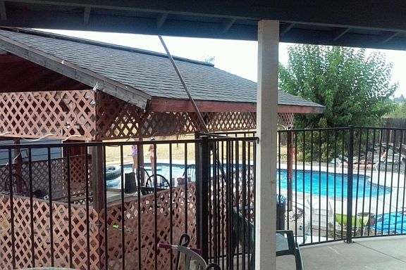 Gorgeous property in the country. This custom built 6 bedroom, 3 bathroom home is move in ready. As you walk towards the front door you will notice the large covered front porch, perfect for an evening swing. Enter through the front door and you are greeted by a grand oak staircase and open living room/dining room. Head over to the kitchen, which has beautiful oak cabinets, granite counter tops, tile floors and a professional grade 6 burner gas range. There are plenty of bedrooms in this house to choose from; the downstairs master bedroom is spacious with french doors opening up to the large back porch area. The master bath has a jacuzzi tub and walk in closet. Through the kitchen, you see a family room, full bathroom and downstairs laundry. Once upstairs there are 5 more good sized bedrooms, bathroom and upstairs laundry. Home has a large play area to the side of the gazebo/spa overlooking the saltwater pool. All this including an oversized detached 2 car garage. And if you want animals, there is a HUGE barn all on 2.33 acres. Bring your horses, goats and chickens. There is plenty of room for everyone. Come see this amazing property today. Situated not too close, and not too far, to everything you need in Oroville.