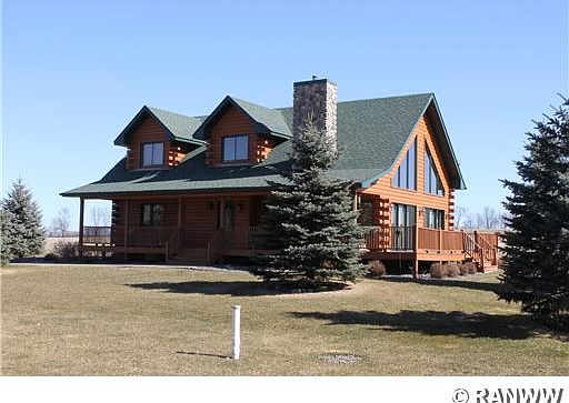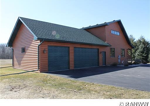 Stunning 4 bedroom, 3 bath log chalet located on 4.8 acres in NW WI. Open concept layout, abundant natural light. Hardwood floors throughout the main level along with 6 panel doors. Custom fireplace on teh main floor family room. Large master suite w/master bath. Main floor laundry. Finished lower level with a family room. Exterior has a large wrap around porch with an oversized garage along with a blacktop driveway. Great curb appeal, Too much to list, Many extras!