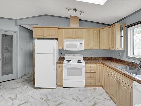Seller will consider any reasonable offer and is very motivated to sell. Are you looking for a comfortable, move-in-ready home in a welcoming community? This well-kept Veteran owned mobile home, located in the desirable Prairie Oasis, could be your perfect fit. With its features and convenient location, Spacious and Bright: As you step into this home, you'll be greeted by vaulted ceilings that create a sense of openness and space. The natural light streaming through the skylight adds to the warm and inviting atmosphere. Primary Bedroom Suite: The primary bedroom is tucked away for privacy and includes a generous 4-piece ensuite bathroom, offering a personal retreat within your home. Climate Control: Enjoy the comfort of central air conditioning, complemented by a ceiling fan that ensures optimal airflow throughout the space. Convenient Location: Situated within walking distance to a variety of restaurants, shopping and hospital, this location offers the convenience of having everything you need. This home is ready to welcome its new owner. Whether you're a first-time buyer, seeking a new beginning, or looking to downsize without compromising on quality, this mobile home is an excellent choice. Don't miss out on the opportunity. "Some pictures are virtually staged." CLICK ON MULTI MEIDA LINK FOR A VISUAL TOUR AND CALL TODAY FOR YOUR PERSONAL VIEWING.
