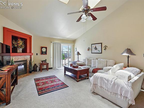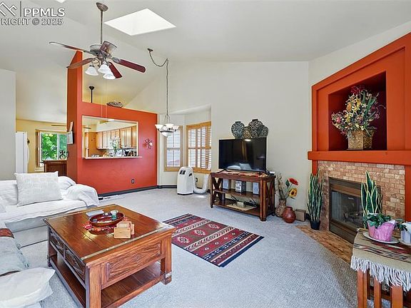 There’s a certain ease about this home—like it knows it doesn’t need to try too hard. It’s got good bones, a solid layout, and just enough updates to help you settle in without a long to-do list. On the main level, the vaulted ceilings in the living room and kitchen give things a little breathing room, while skylights and accent walls add light and personality. A gas fireplace with a brick surround and a built-in display nook gives the space a cozy spot to gather. Hardwood floors greet you in the entry and kitchen, while the bedrooms offer some flexibility: one with direct access to the full hall bath, the other a roomy primary suite with LVP flooring and a 5-piece bathroom that has double sinks, a soaking tub, and a walk-in shower. Downstairs, the finished basement opens up more possibilities—with sealed concrete floors in the spacious family room, a bedroom with a walk-in closet, a full bath, and a laundry room. There’s even a partial kitchen setup with sealed concrete floors—perfect for weekend snacks, guests, or movie nights. The backyard is low-maintenance, featuring a fully fenced yard and a large patio, perfect for grilling or entertaining. Out front, a mature tree shades a grassy lawn, and the 2-car garage keeps things practical. Just one block from Fort Carson’s Gate 3 and close to the neighborhood school, dog park, shopping, Hwy 115, and I-25, this home makes everyday life just a little bit easier.