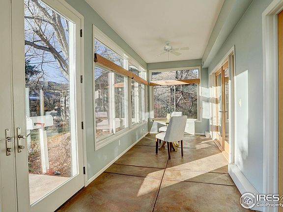 Just moments from downtown and all that Boulder has to offer, this property offers a serene escape. Nestled at the end of a cul de sac in a quiet and friendly neighborhood is this meticulously maintained home. Upon entering, you will be greeted by an abundance of natural light pouring through the south-facing walls of glass encompassing the 4-seasons room. Wood flooring extends throughout the home and seamlessly guides you to the living room with a cozy gas fireplace and bright windows. The updated kitchen is outfitted with custom soft-close cabinets providing plenty of storage space. A main floor bonus room would make an excellent home office or convert to 3rd bedroom. Ascend the stairs to the generous-sized primary bedroom with additional flex space for a dressing room or sitting area. The upstairs secondary bedroom is spacious and bright. The oversized soaking tub in the primary bath is the perfect place to unwind. The lower level rec room has plenty of room for an additional entertainment space. You will love the ultra-private backyard with mature landscaping and a flagstone patio. New windows and roof, top off this ideal property! This one-of-a-kind home offers discerning buyers the peace of mind of having a well-cared property in a top-notch Boulder location.