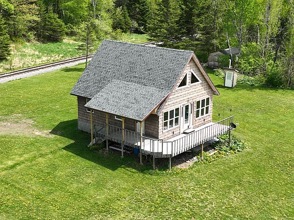1,100 feet of shoreline on the Aroostook River! This charming camp is perched on a private grassy slope overlooking the water. Enjoy the view right from your front deck. Electricity and running spring water make camp life comfortable here on the river. On-demand hot water for the shower, and a compost toilet add to the convenience, and to top it all off, a heated outhouse! A septic plan is available, the site is already marked and staked. The camp is solidly constructed on a poured concrete slab and clean dry crawlspace which is also great for extra storage. Efficient heating and cooling is provided with a heat pump. The seller has added a new roof, windows, siding, and much of the camp interior has recently been finished in pine with three fresh coats of poly. Materials will be left behind to finish off the rest including pine boards to finish the bathroom, flooring, and a spiral staircase. The 12x16 shed can house your outdoor equipment, mower, boat, etc. 10 mins to groceries and gas in Ashland, and a 20 minute drive will deliver you to Six Mile Gate in the North Maine Woods. This camp could be converted to a year-round residence with few modifications. A wonderful opportunity to own waterfront property with a rustic vibe and some modern amenities.