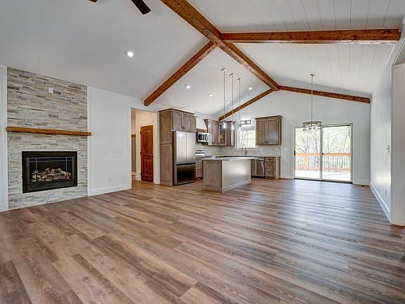 Welcome to your dream home! Close enough from the town of Ellijay, but rural enough to enjoy peaceful living. The Ridgeway boat ramps at Carters Lake as well as mountain biking and hiking trails are just a short drive away. This newly constructed 1435 square foot home is situated on a wooded 1.69 acre lot. The 3BR/2BA ranch style home contains many upscale features including stainless steel appliances, granite counters, tile baths, LVP flooring, an unvented gas log fireplace, and more. The exterior is Hardi-plank board and batton which offers longevity and low maintenance. Unwind on the large rear deck, and enjoy the tranquil, natural setting! Your investment is protected by the Covenants and Restrictions of nearby Jakes Landing, but without any dues owed. Come enjoy laid back living!