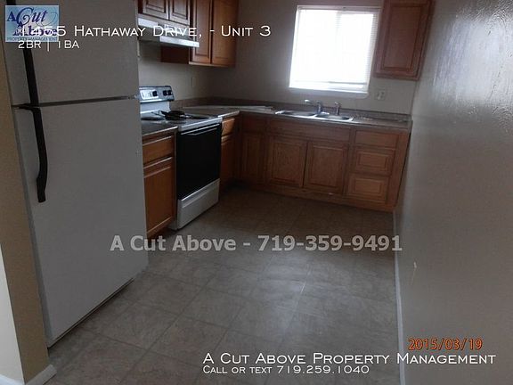SCHEDULE A SHOWING ONLINE AT: showmojo.com/lh/cab02ef083 This updated 2 bedroom, 1 bath apartment has new carpet and paint, in Cimarron Hills comes with refrigerator, stove, disposal and is pet friendly. This is a no smoking / no medical or recreational marijuana property. DRIVE BY THE PROPERTY and give us a call today for a showing at 719-359-9491, to see all our listing please visit us at www.acutabovemanagement.com. Also, like us on Facebook to see new properties. 1 Year Blinds Carpet Coin Operated Laundry Disposal Living/Dining Room Combo Oven Range Stove Vinyl Window Coverings