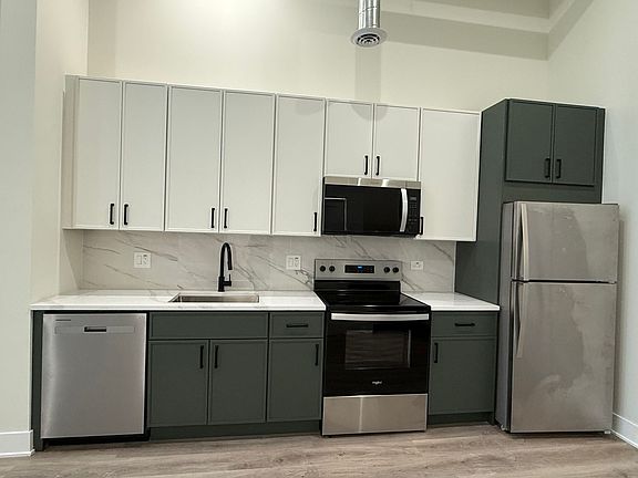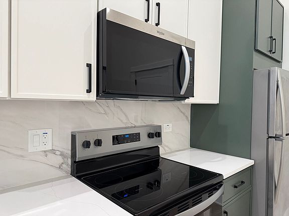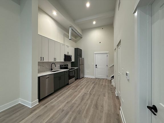 Modern finishesHigh ceilingsSlim-shaker kitchen cabinetsLoft-style living spaceRoller shadesCentral heat and airStainless steel appliances