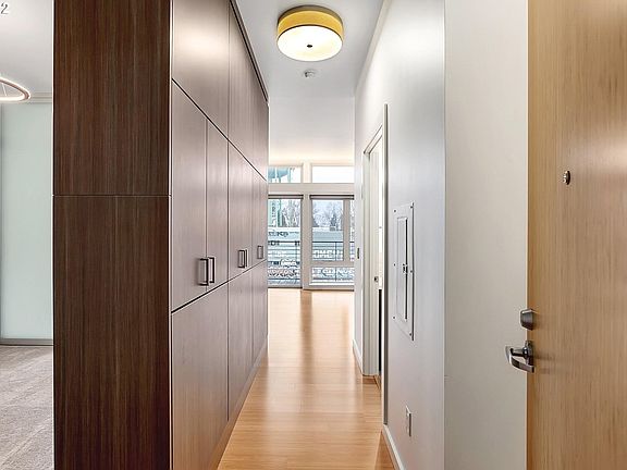 Modern and bright! LEED Platinum building for energy efficient features thru-out. Great room w/ bamboo floor,large windows, hi-ceilings; Kitchen w/ quartz,SS appliances,new dishwasher; Bedroom w/ sliding doors & wall of built-in cabinets. Full bath with washer/dryer combo unit & tub/shower. All new interior paint & carpet. Relax on the balcony while being steps away from vibrant Overlook neighborhood; Walkscore of 91 & Bikescore of 100! Dining,Max/Bus line, New Seasons and more at your doorstep.