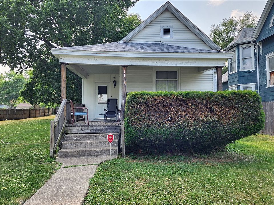 Welcome to this charming property boasting a spacious 2-bedroom, 1-bath layout, complete with a generously-sized kitchen and dining room. The residence features an unfinished basement, offering endless possibilities for customization. A delightful wrap-around front porch adds character and provides a cozy outdoor space. Additionally, a detached 2 and a 1/2-car garage with a covered sitting area is included, providing ample parking and a relaxing spot to unwind. The property is fully enclosed by a privacy fence. Notably, a second lot accompanies this property, presenting a blank canvas for your imagination to run wild. Enjoy the freedom to create and design to your heart's content!