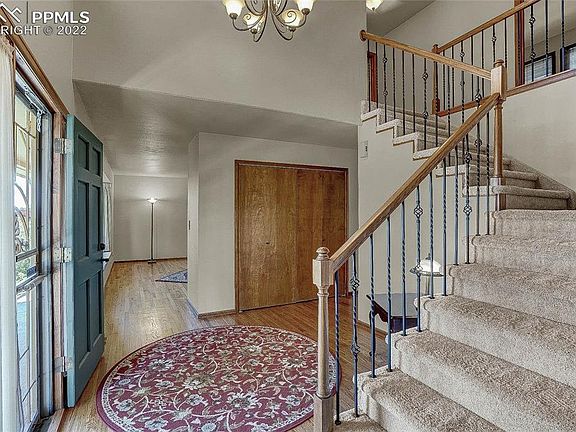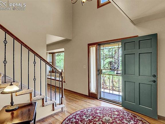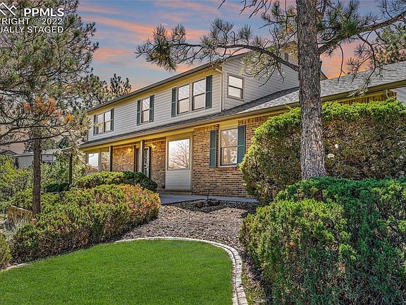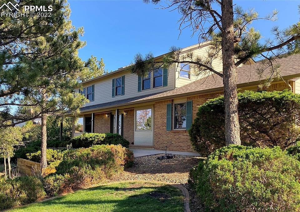 Big and beautiful with room to spread out. Immaculate, Executive Floor Plan. This 5 bed/4 bath 2-story at the top of desirable Oak Hills is nestled in a forest-like setting in the foothills with beautiful pine trees throughout the lot and amazing views of Pikes Peak and the Front Range. Beautifully designed with modern updates. Enjoy Pikes Peak views from the updated kitchen which features granite counters, abundant cabinet space, SS appliances and a walk-out to the expansive custom backyard patio. Enjoy all Colorado has to offer. The main level office provides private work-from-home space while being steps away from the rest of family living. Upstairs holds the extra large Master suite with a sitting area, walk-in closet, and attached bath. Check out the views from all the bedrooms! Three more bedrooms and a full bath on the upper level ensures room for all. Relax and enjoy movies, games, and together time in the spacious basement which features a large bedroom and bath, second family room with wet bar, and a potential theater area. Only 2 owners with loads of pride of ownership. New roof. New carpet in basement. Located in desirable Academy District 20. Easy access to I-25. Minutes from retail and restaurants. Minutes from Ute Valley Park. New carpet in basement. New roof. Ideally situated and just waiting for you to call it home. Virtually staged photos.