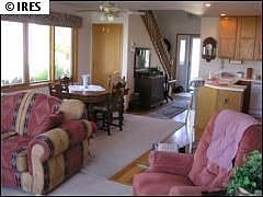 Gorgeous Ranch Meadow condo. End unit, with a 2 story wall of windows and large private deck to enjoy views that include Mt. Meeker. Recently updated kitchen and tile baths, silestone counters. Great room stone fireplace. Main level master suite with private bath and large walk in closet. Upper levels offers a loft/family room with 2nd walk in closet and 2 generous sized guest bedrooms. If you have been searching for a Estes Park condo, this is one you do not want to pass up!