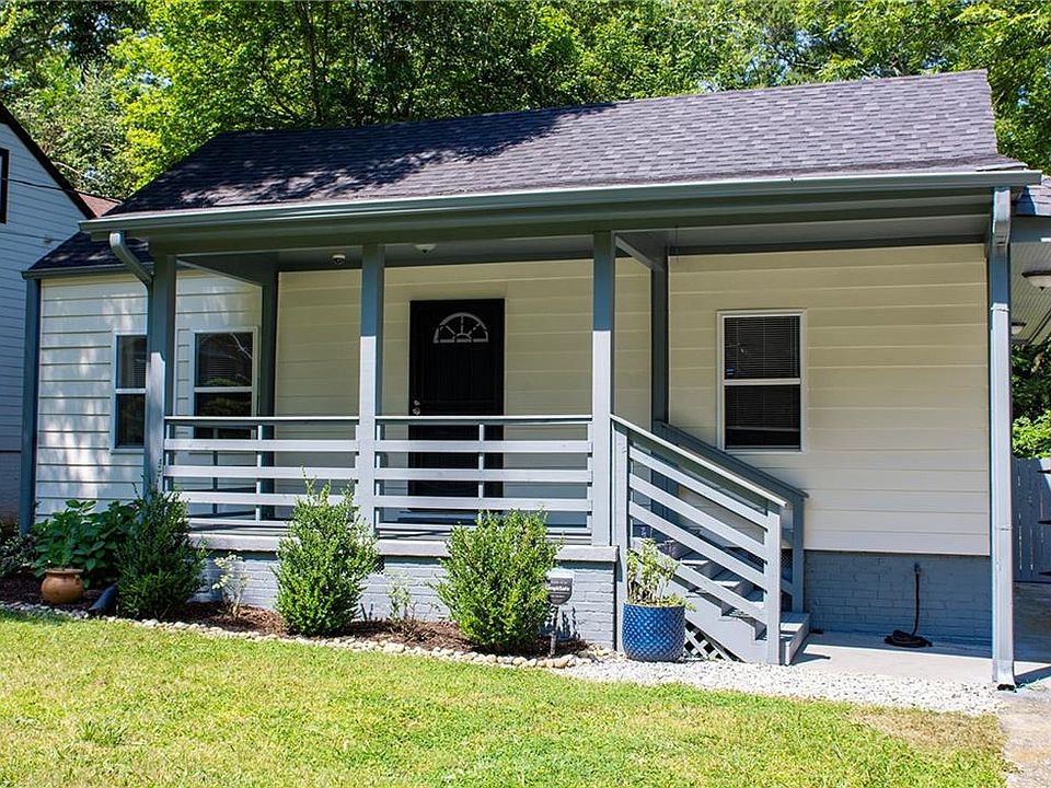 Ooh la la, this chic Scandinavian cottage gives major Cool Kid vibes. Poised on a quiet street just 2 blocks from the Oakland City Marta station, sits this open concept 3 bed, 3 bath home with stunning backyard garden. As you approach, the swaying sunflowers in the breeze will have you smiling before your gaze shifts to the freshly painted Pinterest inspired exterior with new modern porch railing. Upon entering, you are greeted by soaring cathedral ceilings drenched in sunlight over the open concept great room. The living room begs for you to throw on a record, shake up a cocktail, and unwind Don Draper style. The open-concept layout of the living, dining, + kitchen creates a sense of spaciousness and facilitates a fantastic entertaining space for dinner parties or perhaps an old fashioned board game night. Kitchen showcases granite counters, SS appliances, and a large island to gather around while you impress your friends with your culinary creations. Explore further to discover three inviting bedrooms, each infused with natural light featuring their own unique character. The primary bedroom is a tranquil retreat, with french doors opening to the deck where you'll sip your morning coffee lazily waking up to the lush garden + backyard. The en-suite boasts a soaking tub, tiled shower, and sizable walk-in closet. The secondary bedrooms are perfect for your customization, perhaps a roommate floor plan, office space, or even a nursery. The front room has it's own pristine ensuite + the middle bedroom utilizes a hall bathroom right out of a Glam Magazine. This home boasts new paint inside and out + new carpet too! Finally, as you step outside into the backyard, you find yourself transported to an English garden. The large back deck, perfect for al fresco dining + entertaining overlooks a manicured lawn with vibrant flower beds + cozy seating area where you may take a disco nap or stay up late debating the meaning of life. This home has something for everyone and everything for someone. Located minutes to Lee & White Breweries & Shops, a hop skip and a jump from the Beltline, and with quick access to the connector + airport, this Scandinavian Cottage shall now take the top spot on your list of homes to see today! Welcome home to Oakland City's chicest new listing.