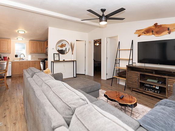 Welcome to this charming 3-bedroom, 2-bathroom home in the highly sought-after Railroad Springs neighborhood of Flagstaff! This well-maintained home features a spacious 2-car garage, a large fenced yard perfect for outdoor activities, and an incredible bonus—a convenient additional door leading from inside the home directly to the backyard, making access to your private outdoor space a breeze. Inside, you'll find newer flooring throughout, creating a fresh and modern feel in every room. The home also boasts a long, flat driveway, offering plenty of space for parking. Plus, with the nearby neighborhood park just a stone throw away, this location is ideal for families or anyone who enjoys outdoor recreation. This rare find combines comfort, convenience, and charm, making it a must-see!