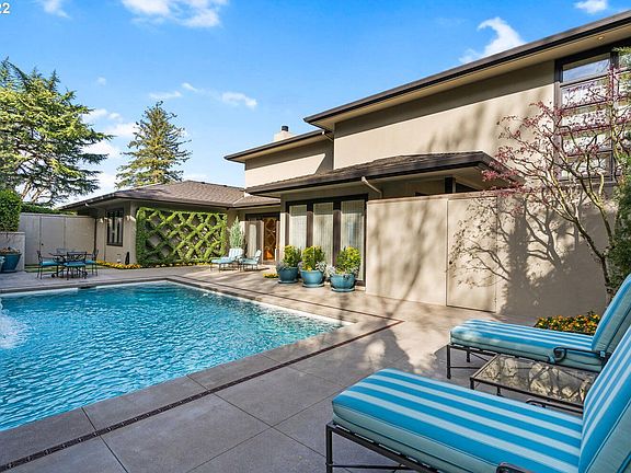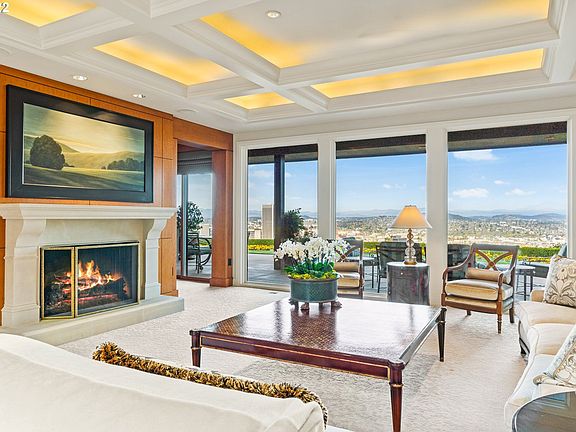 Unparalleled elegance and breathtaking Mt Hood, Mt Adams, Mt St Helens and city views abound in the Portland Heights' best kept secret! Stunning craftsmanship throughout: Crema Marfil marble slab, luxe Anigre millwork, 2 primary suites with sumptuous sitting and dressing rooms/offices and stellar spa bathrooms. Flow from the chic sun patio with waterfall pool through walls of glass doors to covered view verandah with grill. 2 showroom garages, wine cellar, custom media room and so much more... Your private executive enclave awaits!