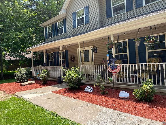 Three bedroom, 2 1/2 bath colonial house nestled in a wooded lot. Carpet and linoleum on interior floors. Breakfast bar/seating in large kitchen. Use the corner gas fireplace for those chilly days. In summer, enjoy the garden while family and friends use the above ground pool. Enjoy the summer nights with the hand made fire pit on the new brick patio. Plenty of parking on the new paved asphalt driveway with a 24 foot entrance area from the road. The driveway wraps around the garage to a back parking pad that has the means to be made into a 3rd garage. The one side of the garage has a back door for a drive through garage. A new shed is set up right off the new driveway in the rear of the house. Enjoy the fresh new open look while sitting on the covered front porch. This home is one not to be overlooked.