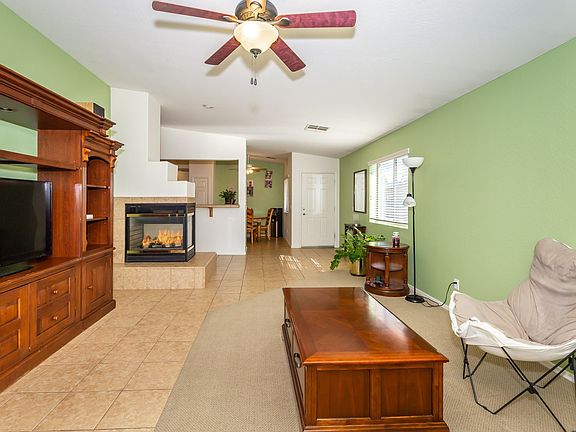 Lovely move in ready home, with vaulted ceilings, den/bonus room, which can be turned into a hobby, craft or potential 4th bedroom. Wonderfully peaceful, meticulously maintained, low maintenance backyard that boasts a covered patio, with no mowing required for the artificial turf, and a beautiful rose garden. Single level, split floor plan, with oversized master bedroom and an extended 2 car garage. Nice fireplace to unwind in front of. Seller will paint green walls in living room, if needed, before close of escrow.
