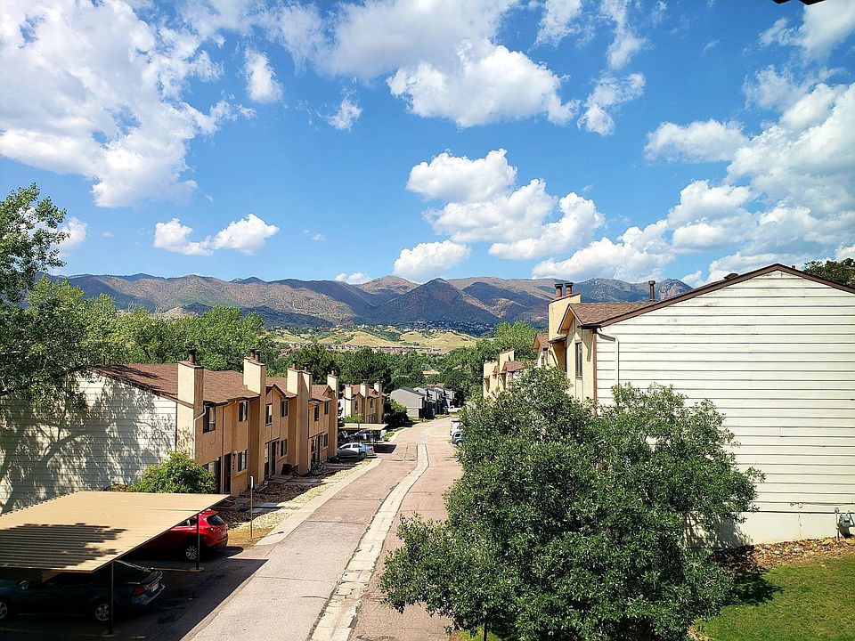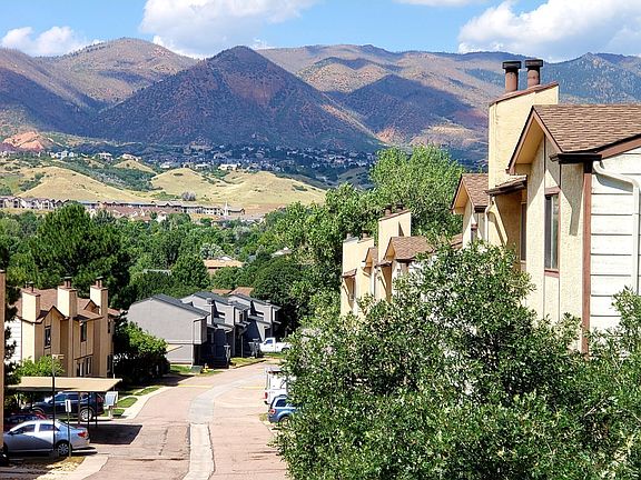 Updated Townhome with Breathtaking Views of the Front Range This beautifully updated 2 bed / 1.5 bath, 1070 sq ft. townhome is perched atop a quiet street and adjacent to lush nature trails. It's conveniently located just minutes from I25, Garden of the Gods, UCCS, Old Colorado City, Ute Valley Park and Downtown. Step inside the main living space to find beautifully appointed hardwood floors, granite kitchen counters with stainless steel appliances, a custom 'murphy bar counter', and a powder room. There's a cozy gas fireplace on the main level to keep you warm during the chillier evenings. The spacious back wooden deck is perfect for afternoon BBQs or for gazing up in the night's sky beyond the cliffs. The renovated stairway banister leads to the two upstairs bedrooms. The first bedroom faces the backyard woods with two adjacent closets while the other commands stunning views of Pikes Peak. The second bedroom contains a nice closet space with an additional quad-shelf linen closet in the hallway. The two bedrooms share the renovated bathroom with a sizeable, tiled shower stall with glass doors. The first floor contains the expansive 28-foot-long garage with a useful storage room, in-unit washer/dryer and handy work counter. Weekly trash collection, lawn, snow removal included. Renter responsible for gas, electric, water, sewer and telecom utilities. Last month's rent due at signing. No smoking allowed. One small pet under 35 lbs. permitted. Minimum one year lease.