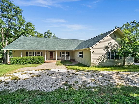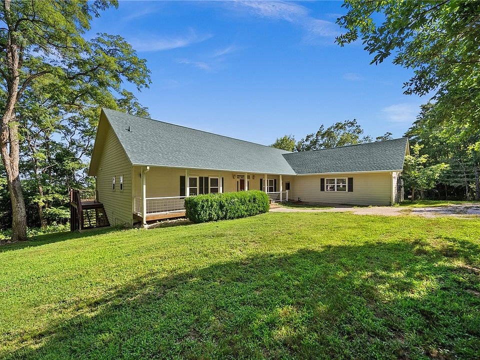 Perched on a hill above Beaver Lake amidst 23.61 acres of Oak and Pine trees, this secluded home reveals an amazing view of the lake. The split floor plan offers dual main suites, which makes this home perfect for families who want everyone under one roof. 2 bedrooms, full bath, and kitchenette afford guests or mother-in-law with a little more personal space than a traditional guest room would allow. You will find the Primary bedroom, bath, half bath within the 3115 sq. ft. on the main floor. The living room has picture windows spanning the entire wall giving you a sunfilled living, dining room, and kitchen. The living room also boasts a beautiful wood burning fireplace that you can cozy up to on chilly days. The nicely equipped kitchen and spacious laundry room with washer, dryer, and shower complete the main floor. Stairs down lead to 3115 sq. ft. of heated, cooled, and plumbed unfinished walkout basement ready for your desired use. The shop area of the basement has a wash basin and toilet for your convenience.