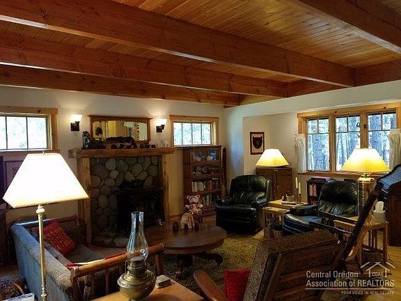 A very special home in the pines. 3 BR's, 2 BA's, 1777 sf w/dbl garage plus detached studio/shop/garage with full bath. Quality construction filled with character and charm. A paved circular drive leads to the courtyard entry and covered porch. Great room living with hardwood floors, river rock gas fireplace and open beams. Solid wood windows, doors and trim. Cedar boardwalks and decking overlooks simply landscaped 1 acre homesite. Located in Crossroads, a wonderful forested community just west of Sisters.