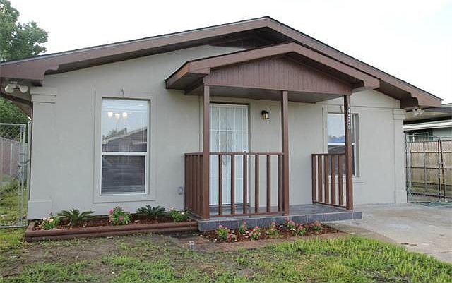 Precious home with stucco front, carport, kitchen with granite counters, stainless steel appliances, breakfast area, kitchen adjoins living room with built in entertainment center, wood laminate floors. Baths with granite vanities. Bring offers. With full price offer, seller will transfer flood insurance, give buyer a new refrigerator and give buyer agent a $1000 bonus.