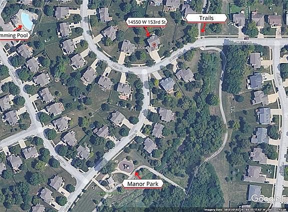 Make yourself at home in this beautiful 2-story located in the coveted Parkhill Manor subdivision. This well-maintained home features four bedrooms, two full bathrooms, two half bathrooms, finished basement, and THREE CAR GARAGE! Upstairs, a large master bedroom with a large en suite bathroom and massive walk-in closet await the new owners. A large upstairs landing offers a great view of the open entry below. The three remaining bedrooms are perfect for kids or guests. The main level features a large, open staircase, a front room that can be used as a dining room, formal sitting room, playroom or office. The living room, large kitchen with huge island and eat-in kitchen area are spacious and open; ideal for large families and guests. Need more space? The well-appointed basement is equipped with two large daylight windows, large wet bar and half-bath. There’s even enough space in the basement for a home office area. Newer carpet on the first and second floors, hardwoods in the entry and kitchen, and ceramic tiled basement offer the perfect mix of beauty and functionality. The fenced backyard features shade trees and a great deck for relaxing and entertaining. Parkhill Manor amenities include extensive sidewalks and walking paths, community playground, and community pool. 160 feet to the east are walking trails that connect to Black Bob Park to the north and Heritage Park to the south, perfect for long walks or bike rides or if you want to walk up to Black Bob Bay, Olathe’s premiere waterpark. The neighborhood park (Manor Park) is just 360 feet to the south. Would you like the option to walk to the store? You are less than a mile from several shopping centers at the corner of 151st and Black Bob that include a grocery store, restaurants, gas station, urgent care, dentist, pharmacy, and pet hospital. Your dream home awaits! Kitchen refrigerator remains with property.