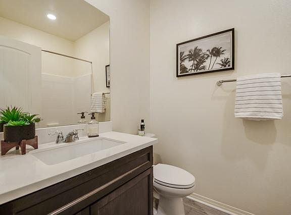Single story, upstairs unit in the gated community of Prado in Eastvale! This turnkey home was built in 2020 and has 2 generous sized bedrooms, 2 bathrooms and an open/airy floorplan. There is a two-car garage with direct access, laundry room and large balcony with mountain views. This community offers a beautiful pool/spa area and a playground and is located near shopping. First month's rent and security deposit due at signing. No pets preferred. NO SMOKING. Tenant pays for all utilities. Parking must be in garage only. Tenant must obtain a renter's insurance policy.