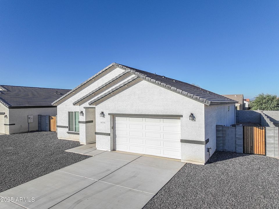 This beautifully crafted, single-story, new construction home offers 3 spacious bedrooms and 2 modern bathrooms, designed with comfort and style in mind. Step inside to discover upgraded flooring throughout and a bright, open-concept layout perfect for entertaining. The thoughtful layout has an abundance of natural light and great use of space. The kitchen features sleek white shaker cabinets, luxury countertops, and an island that's ideal for gatherings. The primary suite includes a private bath and generous walk-in closet space. The oversized laundry room includes lots of extra storage space. Enjoy the convenience of a finished epoxy garage floor, adding durability and a clean, polished look. The large, covered, back patio is perfect for BBQs and entertainment. This home is a must see!